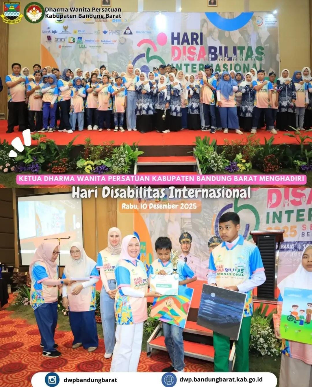 Ketua Dharma Wanita Persatuan Kabupaten Bandung Barat menghadiri undangan dari Dinas Sosial pada Acara Peringatan Hari Disabilitas Internasion...