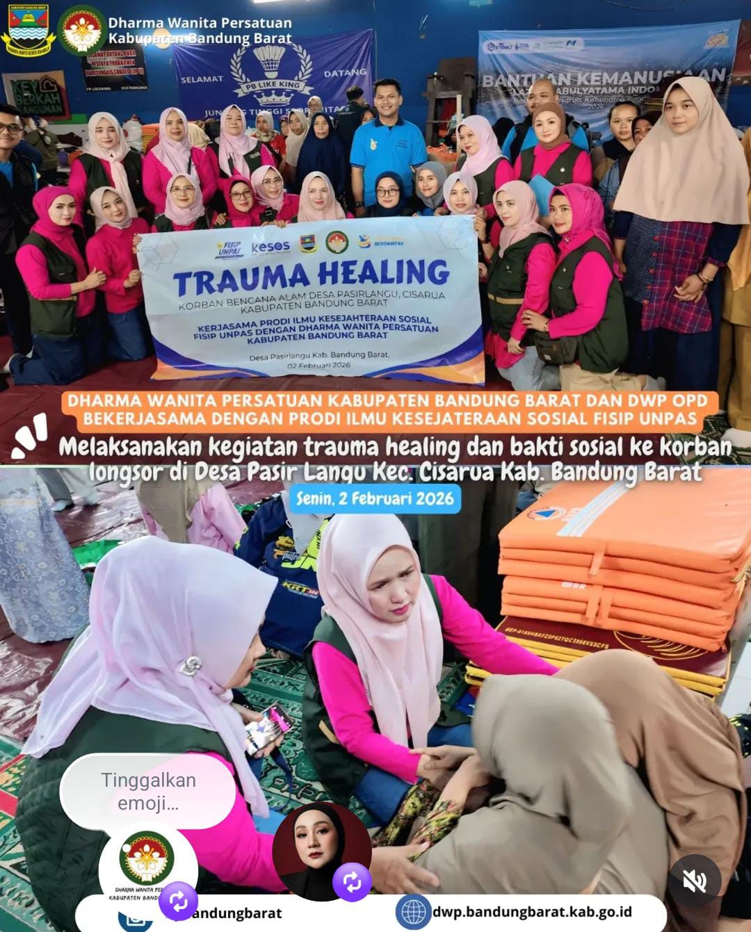 Dharma Wanita Persatuan Kabupaten Bandung Barat bersama Dharma Wanita Persatuan OPD melaksanakan kegiatan trauma healing dan bakti sosial bagi para ibu terdampak bencana longsor di Desa Pasirlangu,...